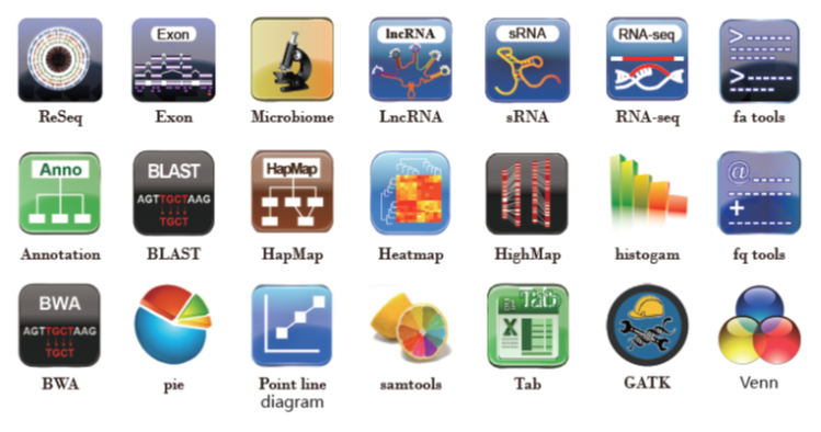標準化流程分析的集成式App是依據(jù)公司多年來進行生物信息分析的經(jīng)驗,集成了一類生物信息分析所要用到的多個軟件,并讓這些軟件串聯(lián)起來,形成一個標準 化的分析流程。標準流程分析出的結果與常規(guī)交由公司進行數(shù)據(jù)處理分析得到的結果一致,以分析報告的形式展示。