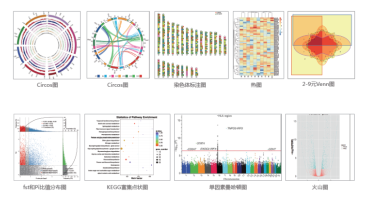 百邁客生物云平臺通過對大量已發(fā)表論文中的圖和表進行總結,編制了大量的圖表繪制軟件,用戶可以根據(jù)自己的需求進行變換,找到適合的方式。常用的圖表類型包括:點線圖、餅狀圖、柱狀圖、Venn 圖和熱圖等。