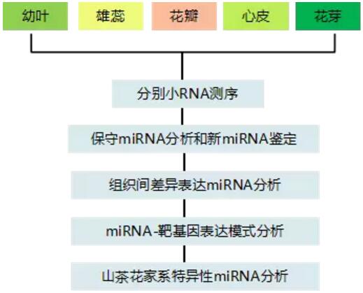 在植物中miRNA是源自有發(fā)夾結(jié)構(gòu)單鏈前體的內(nèi)源性小RNA。miRNA和其靶基因的進(jìn)化代表了一種動(dòng)態(tài)的基因表達(dá)通路,它們?cè)跊Q定植物不同器官發(fā)育中起基礎(chǔ)性的作用。本文利用高通量小RNA測(cè)序的手段研究了山茶花5個(gè)器官的miRNA空間表達(dá)譜。