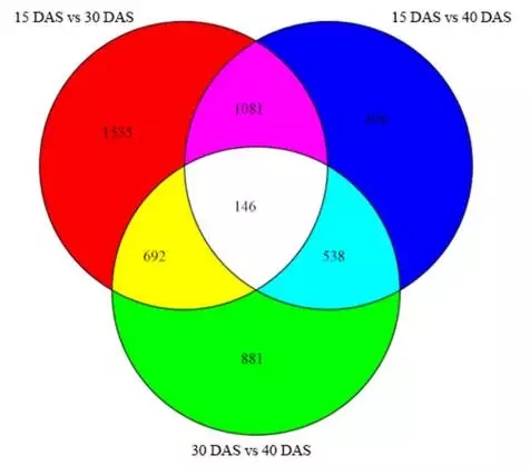 3.為了鑒定在洋蔥球莖膨脹過程中活躍的通路,將得到的unigenes與KEGG數(shù)據(jù)庫中標(biāo)準(zhǔn)參考通路進(jìn)行比對。15 DAS vs. 30 DAS注釋到了95個(gè)pathway,15 DAS vs. 40 DAS 注釋到了79個(gè)pathway,30 DAS vs. 40 DAS注釋到了86個(gè)pathway。共有6113個(gè)unigenes注釋到了120條KEGG通路中?!暗矸酆驼崽谴x”構(gòu)成了各樣本文庫中的初級代謝途徑,并有可能在球莖膨大和發(fā)育過程中活性更高。