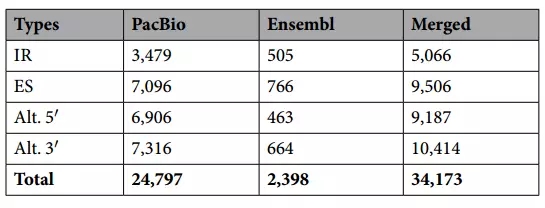 共獲得802,358個ROIs序列,其中有1.466,034全長非嵌合(FL)序列和316,000非全長(nFL)序列。