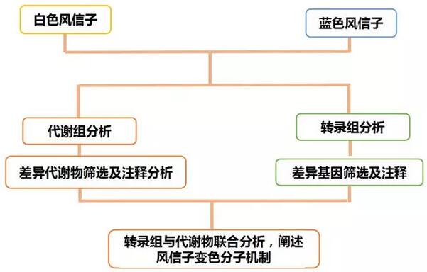 1.本篇文章結(jié)合已發(fā)表的文章,采用靶向代謝組的技術(shù),分析白色和藍(lán)色風(fēng)信子中與花青素合成相關(guān)差異代謝物,同時(shí)通過(guò)轉(zhuǎn)錄組解析花色素合成相關(guān)差異基因變化,最后轉(zhuǎn)錄組和代謝組揭示了白色風(fēng)信子褪色分子機(jī)制。