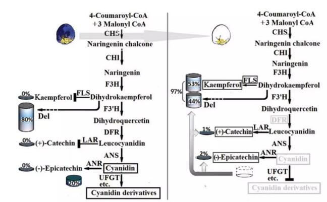 圖1 藍(lán)色和白色花中花青素代謝過(guò)程通路