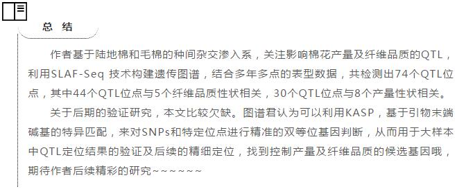 [3] Zhen Z, Hai H, et al. Construction of a high-density genetic map by specific locus amplified fragment sequencing (SLAF-seq) and its application to Quantitative Trait Loci (QTL) analysis for boll weight in upland cotton (Gossypium hirsutum.)[J], BMC Plant Biology, 2016