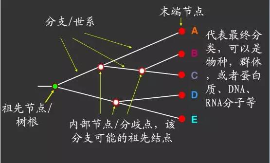 系統(tǒng)進化樹中各個元素的介紹如圖1所示