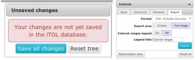 3、系統(tǒng)進化樹的調整,導入進化樹后,右上角會出現(xiàn)一個control面板,該面板包含【Basic】、【Advanced】、【Datasets】、【Export】三個標簽項。常進行進化樹展示的朋友對【Basic】、【Advanced】和【Export】三個標簽項的內容和操作應當熟練掌握。