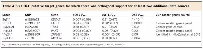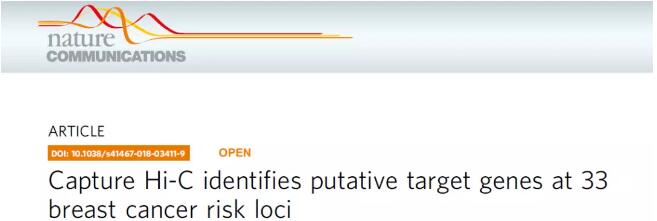 捕獲Hi-C測序鑒定33個乳腺癌風險基因座潛在的110個靶基因