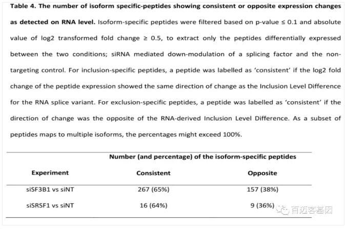 Splicify的意義在于識別RNA水平和蛋白質(zhì)水平上的isoform。通過對RNA和蛋白水平的對比分析證明該方法能夠成功地識別特定條件下蛋白質(zhì)水平上的異常剪接事件。