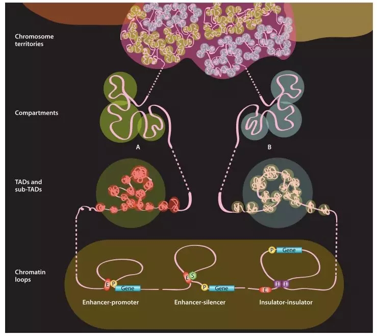 圖1 染色體不同層級三維構(gòu)象圖