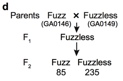 遺傳群體材料選擇:親本(GA0146和GA0149),測序深度20X;2個混池(F2群體,有絨型和無絨型各20個子代),測序深度30X;