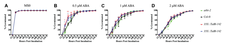 注:根部接種鐮刀霉菌,(高耐受型GA0165,GA0078和GA0190;高敏感型GA0198,GA0035和GA0026)