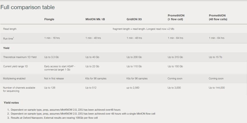 Oxford Nanopore各測(cè)序平臺(tái)比較