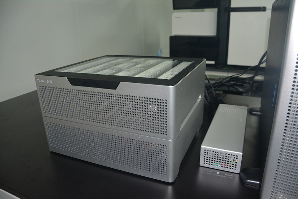 ????????2018年8月7日,Oxford Nanopore產(chǎn)品中的PromethION平臺(tái)已抵達(dá)北京百邁客測(cè)序?qū)嶒?yàn)室。截止目前,百邁客已經(jīng)擁有Oxford Nanopore的MinION、GridION X5和PromethION全套Nanopore測(cè)序儀,投資金額超過3000萬(wàn)人民幣。PromethION作為Oxford Nanopore產(chǎn)品中的平臺(tái),在設(shè)計(jì)不僅具備了實(shí)時(shí)、長(zhǎng)讀長(zhǎng)、直接測(cè)序等特點(diǎn),在產(chǎn)量上還可能與市場(chǎng)上傳統(tǒng)測(cè)序儀相匹敵。在2018年初,Oxford Nanopore官方宣布單張PromethION測(cè)序芯片的數(shù)據(jù)產(chǎn)出超過150 Gb。而實(shí)際上,使用臨床樣本、植物樣本以及測(cè)試樣本的用戶也能夠獲得單張芯片100 Gb 的產(chǎn)出。作為Oxford Nanopore的重要合作伙伴,百邁客將基于PromethION/GridION平臺(tái)為客戶提供商業(yè)測(cè)序服務(wù)。