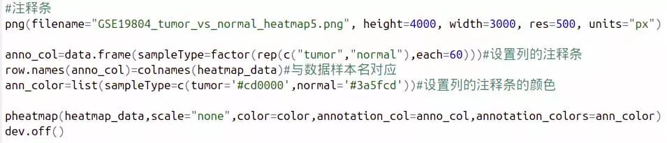 - annotation_col:數(shù)據(jù)框格式,用來(lái)定義熱圖所在列的注釋條