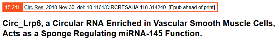 circ_Lrp6與miR-145直接結(jié)合:AGO2 IP實驗驗證二者與AGO2結(jié)合(circRNA與miRNA的結(jié)合由AGO2介導(dǎo));RIP實驗驗證二者之間直接結(jié)合;等。