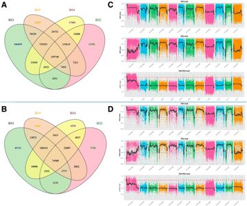 圖3. SNP/InDel統(tǒng)計(jì)及BSA分析. A. SNP統(tǒng)計(jì);B. InDel統(tǒng)計(jì);C. SNP-index分析;D. InDel-index分析