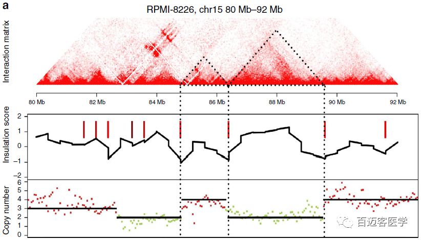 作者通過Hi-C對MM的三維基因組進行了研究,并聯(lián)合WGS、RNA-seq、Chip-seq分析了三維結構(compartment、TAD)、CNV、易位和基因表達之間的關系,從而識別MM相關的通路和關鍵基因。這些發(fā)現(xiàn)拓展了對MM的發(fā)生機制以及非整倍體癌癥基因組的空間無序性的認識,對MM的臨床治療和藥物開發(fā)有一定的啟示。