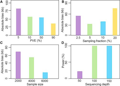 2.?取樣率與QTG位置偏差大?。寒斎勇蕿?0%時,位置偏差略大;較大的取樣比例會增加群體大小,但有效重組事件數(shù)量也會增加
