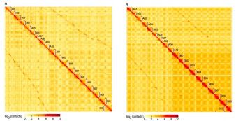 圖1,Hi-C數(shù)據(jù)在兩版亞洲棉基因組上的比對(duì)