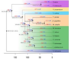 比較基因組分析:直系同源基因鑒定:?OrthoMCL (version 2.0);系統(tǒng)發(fā)育樹構(gòu)建與分化時(shí)間估算:?MUSCLE、Gblocks (version 0.91b)和RaxML(version 8),MCMCTREE評(píng)估分化時(shí)間;基因家族擴(kuò)張和收縮分析:CAFE(vertion 3.1);染色體共線性分析、4DTV檢測及Ks值計(jì)算:MCscan。