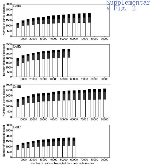 - 7個(gè)B1a細(xì)胞全長(zhǎng)cDNA分別進(jìn)行二代Illumina轉(zhuǎn)錄組測(cè)序(73,086-351,876 150?bp reads/細(xì)胞)和三代ONT全長(zhǎng)轉(zhuǎn)錄組測(cè)序(R 7.3 17,749-52,696/R9.4 57,874-128,726 ONT reads/細(xì)胞),二者間進(jìn)行比較。