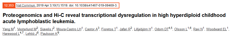 Hi-C輔助揭示超二倍體兒童急性淋巴細(xì)胞白血病的轉(zhuǎn)錄失調(diào)