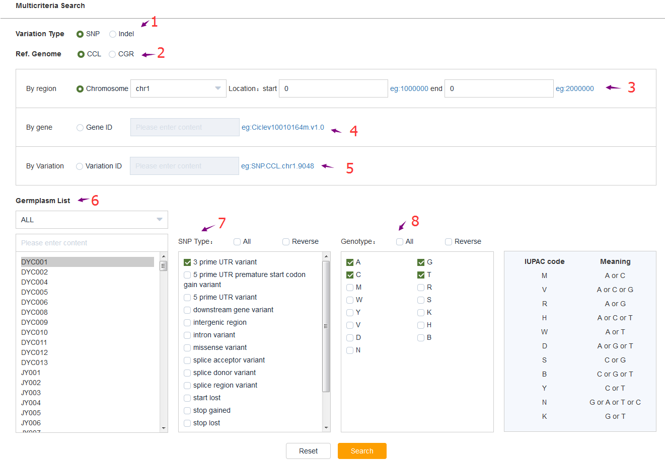 - 具體要檢索的基因型Genotype