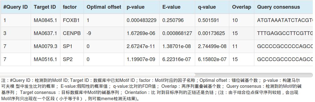 我們根據(jù)實際需求,從MEME-ChIP的原始分析結(jié)果中提取了精華,提供了較為全面完整的分析結(jié)果:
