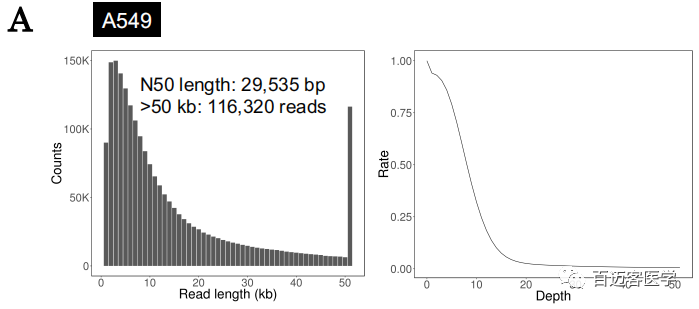 為了評估單堿基水平數(shù)據(jù)質量,通過使用Integrative Genomics Viewer(IGV)手動檢查了比對結果,針對相應細胞的已知驅動突變,在A549中,有11條reads顯示出致癌突變KRAS G12S 點突變(左,圖1D)。在PC-14中,8條reads顯示驅動基因NRAS Q61K點突變(右,圖1D)。REFR-LC-KJ和RERF-LC-MS細胞系中沒有任何眾所周知的驅動突變。所有這些結果與以前的報導一致。這些結果共同表明,至少當癌組織純度(癌細胞含量)與培養(yǎng)細胞一樣高時,僅使用長讀測序也可以在單堿基水平上進行突變檢測,即檢測點突變。
