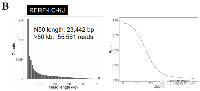 通過采用split比對方法來檢測新的融合基因(圖2A),確定了3種新的重排,通過Illumina的短讀長測序進一步證實了這些重排。LC2/ad中融合基因為NELL1-CCSER1和EFNA5-IKBKB,在RERF-LC-KJ中為UTS2B-GRM4融合基因。每種情況,長讀長測序均能以單堿基分辨率√確鑒定連接點。