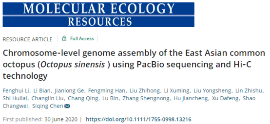 近日,中國(guó)水產(chǎn)科學(xué)研究院黃海水產(chǎn)研究所陳四清研究員團(tuán)隊(duì)與北京百邁客生物科技有限公司合作完成了中國(guó)真蛸(Octopus sinensis)染色體水平基因組,相關(guān)研究成果發(fā)表在知名期刊Molecular Ecology Resources上。該研究是陳四清研究員團(tuán)隊(duì)繼今年5月發(fā)表超高質(zhì)量綠鰭?cǎi)R面鲀基因組后在水生生物基礎(chǔ)研究領(lǐng)域取得的又一項(xiàng)重要研究成果。