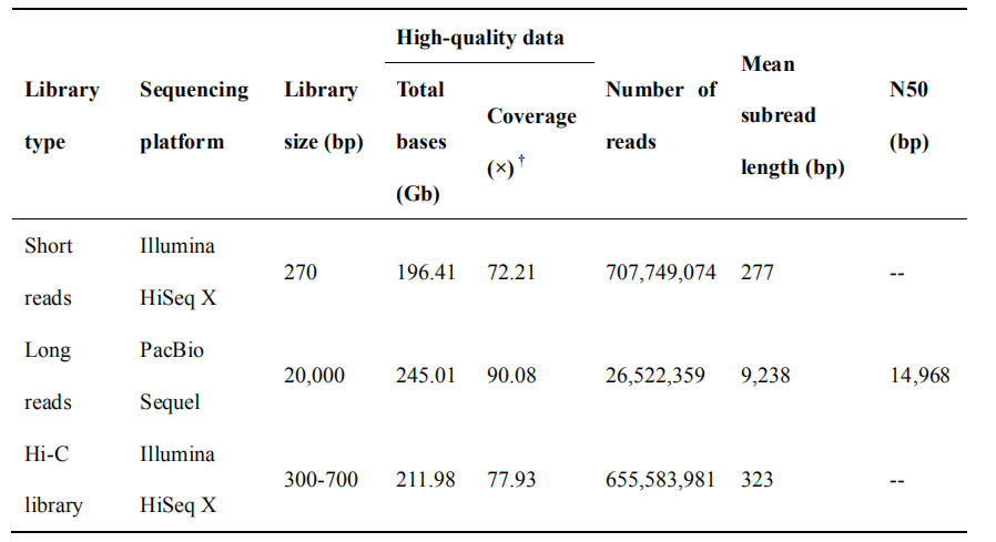 表1 中國(guó)真蛸基因組測(cè)序數(shù)據(jù)