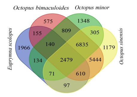 表2 中國(guó)真蛸基因組與已發(fā)表的頭足類基因組比較
