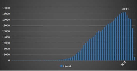 二代轉(zhuǎn)錄組測序已經(jīng)如火如荼的開展了近十幾年,關(guān)于mRNA研究的文章也呈爆發(fā)式的發(fā)展,但是最近幾年單純的mRNA檢測似乎不再那么吃香了。我們來看一組數(shù)據(jù),下圖是Pubmed數(shù)據(jù)庫中檢索mRNA得到的相關(guān)的文獻信息,數(shù)據(jù)顯示2015年時普通mRNA文獻已經(jīng)達到峰值,隨后關(guān)于mRNA的文章開始有下滑的趨勢。