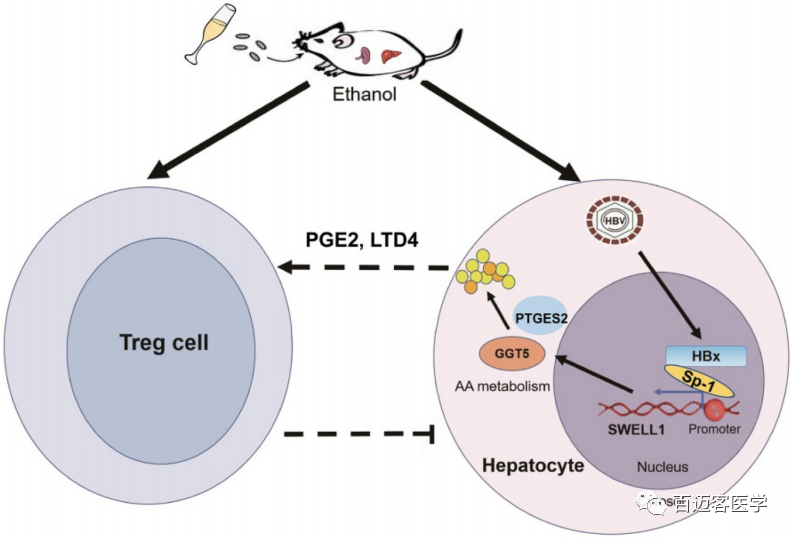 案例五:慢性酒精攝入和HBV通過HBx-SWELL1- 花生四烯酸信號(hào)傳導(dǎo)誘導(dǎo)脂質(zhì)代謝異常并激活HBV-Tg小鼠Treg細(xì)胞