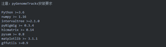 參考網(wǎng)址:https://pygenometracks.readthedocs.io/en/latest/content/installation.html
