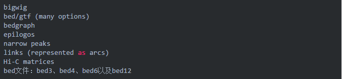 pyGenomeTracks旨在產(chǎn)生高度可定制的高質(zhì)量基因組瀏覽器軌道。目前,可以繪制: