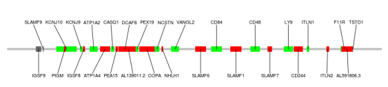 首先用你能用的辦法將目標(biāo)區(qū)域(1:160000000-161000000)內(nèi)的基因、目標(biāo)區(qū)域上游的兩個基因、目標(biāo)區(qū)域下游的一個基因的位置都提取出來,然后為每個基因賦一個顏色。中間灰色的bar兩端的突出可以從第一個基因的開始位置向上游擴100K、最后一個基因的結(jié)束位置向下游擴100K。整理成作圖用的輸入文件,如下: