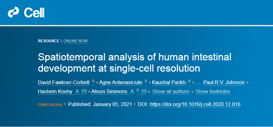 研究人員從代表了不同的發(fā)育時(shí)間和組織位置的17個(gè)單獨(dú)的胚胎中收集了77個(gè)腸道樣本繪制成單細(xì)胞圖譜 (Figures 1?A和1B),數(shù)據(jù)集范圍從8到22 PCW,跨越隱窩形成之前的時(shí)間點(diǎn),直至成人狀絨毛/隱窩形態(tài)的發(fā)展(FiguresS1A)。使用寡核苷酸標(biāo)記抗體,產(chǎn)生了76,592個(gè)細(xì)胞 (Figures 1A 和 S1B–S1I; STAR methods)。