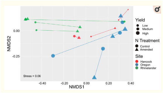 通過對在威斯康星州柳枝稷的三個生產(chǎn)地點AMF的研究,發(fā)現(xiàn)施氮量對柳枝稷AMF的組成和多樣性沒有一致的影響。此外,本研究中闡明的ASV在理論上代表了柳枝稷土壤中存在的√確、活的基因型。在對AMF物種劃分和種內(nèi)功能多樣性缺乏分類共識的情況下,ASVs可作為一致的序列標識,為未來尋求AMF功能和生物地理學的研究以及區(qū)域適應AMF接種的生物勘探提供參考。