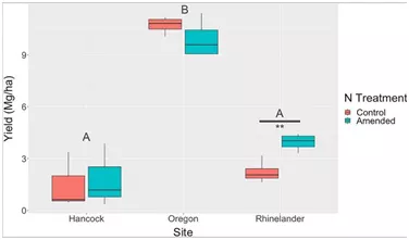 在萊茵蘭德試驗區(qū),與對照試驗區(qū)相比,施氮提高了柳枝稷的產(chǎn)量,但是在其他2個地區(qū)中沒有發(fā)現(xiàn)顯著差異;
