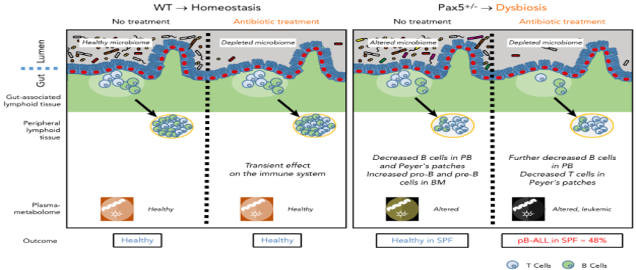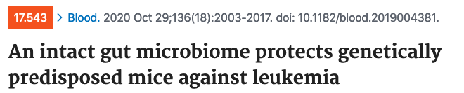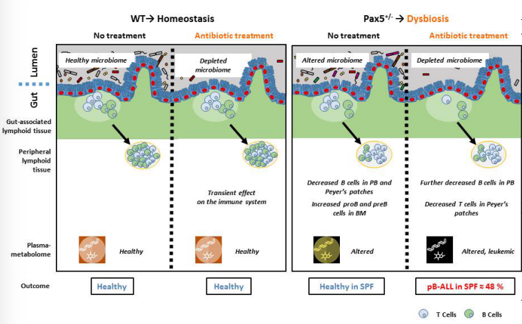 - 在缺乏感染性刺激的情況下,抗生素治療導(dǎo)致微生物群缺失可在易患遺傳攜帶者中引發(fā)白血病。
