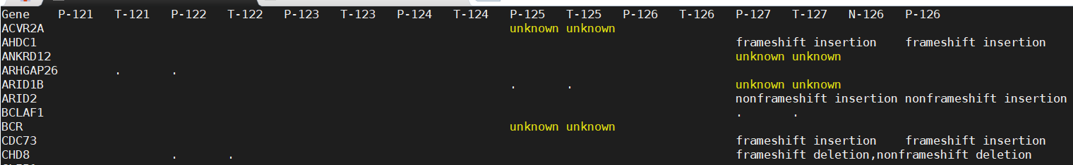 mat<-Replace(mat,from?=?"frameshift?insertion",to?=?"frameshift_mutation",pattern?=?"")