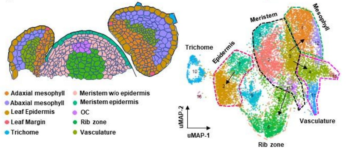 獲得的高分辨率表達(dá)圖鑒定了主要的莖尖組織和發(fā)育階段的不同細(xì)胞類型,描繪了葉肉細(xì)胞,脈管系統(tǒng)細(xì)胞,表皮細(xì)胞和毛狀體細(xì)胞的發(fā)育軌跡。這項(xiàng)研究證明了snRNA-seq在植物研究中的作用,并為異質(zhì)莖尖細(xì)胞提供了時(shí)空基因表達(dá)圖譜。該文章已發(fā)表在預(yù)印本雜志BioRxiov上。