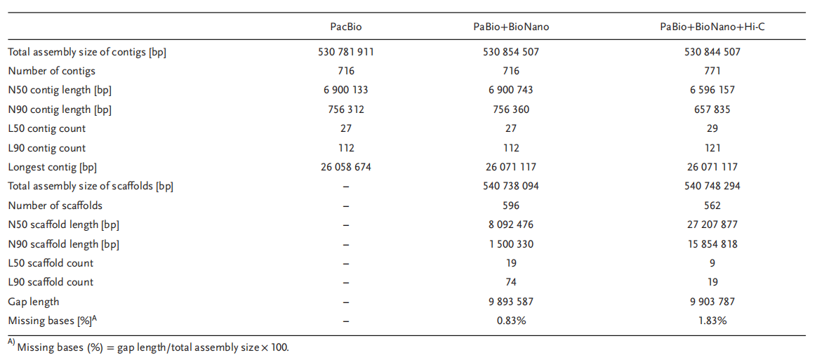 - 材料:C.×hytivus自交第14代(S14);測序:~69X PacBio+~104X Hi-C+Bionano;轉(zhuǎn)錄組輔助基因預(yù)測:Illumina RNA-Seq 及 PacBio Iso-Seq