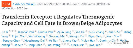 運(yùn)用多組學(xué)的技術(shù)綜合研究發(fā)現(xiàn)Tfr1為米色脂肪細(xì)胞生熱調(diào)控重要的候選基因。研究表明當(dāng)小鼠米色脂肪細(xì)胞缺乏Tfr1會(huì)破壞產(chǎn)熱,胰島素抗性增加、同時(shí)伴有鐵缺乏性慢性炎癥和線粒體功能障礙。米色脂肪細(xì)胞冷處理可以維持HIF1a的穩(wěn)定,激活Tfr1基因,Hif1α基因可以減少產(chǎn)熱基因的表達(dá),卻不改變米脂細(xì)胞體內(nèi)核心的溫度。值得注意的是,Tfr1在肩胛間棕色脂組織(iBAT)缺失會(huì)導(dǎo)致棕色前體脂肪細(xì)轉(zhuǎn)換為向白色脂肪細(xì)胞和肌肉細(xì)胞。相反,在tfr1缺失個(gè)體中,如飲食中長期缺乏鐵則不能轉(zhuǎn)化出現(xiàn)上述的轉(zhuǎn)化。此外,如果Tmprss6缺失也會(huì)小鼠腹股溝白色脂肪組織和肩胛間棕色脂組織兩個(gè)部位鐵缺乏。同時(shí)會(huì)激發(fā)低溫誘導(dǎo)型米色脂肪細(xì)胞形成和棕色脂肪產(chǎn)熱。綜上所述,這些發(fā)現(xiàn)表明不管是在依賴鐵離子或是不依賴鐵離子的產(chǎn)熱過程中Tfr1都起著重要的作用。
