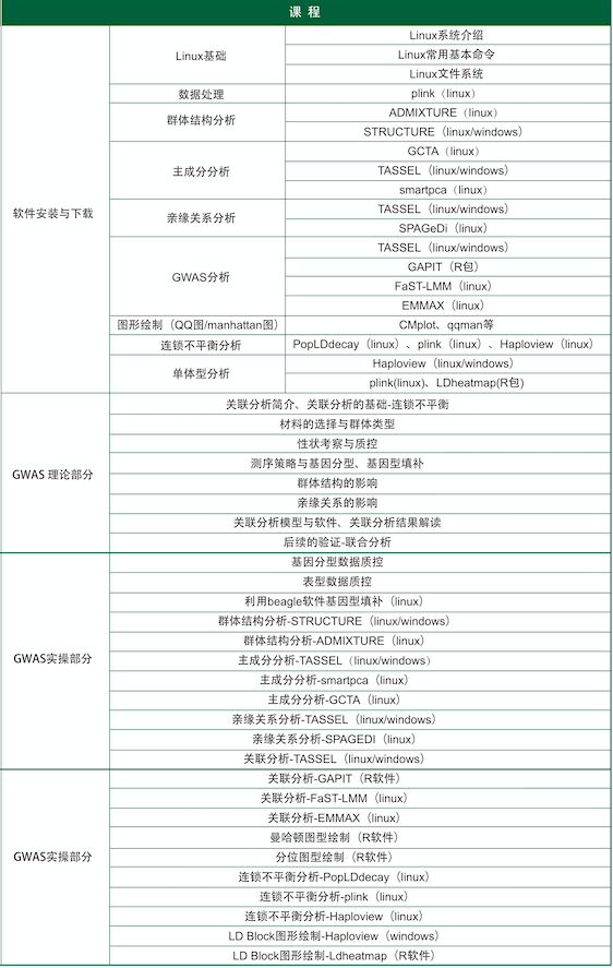 本課程主要從實踐入手,重點講解 GWAS 分析中用到的各種分析方法與常用分析軟件。包括群體結(jié)構(gòu)分析、主成分分析、親緣關(guān)系分析、連鎖不平衡分析、單體型分析等內(nèi)容。從原始數(shù)據(jù)開始,逐步完成分析內(nèi)容,并對分析內(nèi)容進(jìn)行整理與挖掘,將數(shù)據(jù)轉(zhuǎn)化成更直觀的圖形來展示最終的分析結(jié)果。同時,課下還可反復(fù)觀看課程視頻,有問題隨時售后群中交流溝通,真正實現(xiàn)“線上學(xué)習(xí)理解,課后練習(xí)指導(dǎo),課下文檔復(fù)習(xí)”。