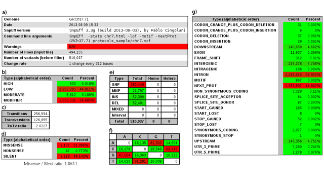 SnpEff 軟件通過基因組結構注釋數據(GTF/GFF文件),對VCF文件中的SNP/InDel信息進行注釋,即主要解釋了SNP/InDel是否能夠對編碼蛋白基因造成影響。SnpEff自帶大量已經發(fā)表的基因組的信息,可以快速利用已發(fā)表的基因組信息進行SNP/InDel位點的注釋分析。對于未收錄的基因組,SnpEff也提供了標準流程來構建對應的分析數據庫。