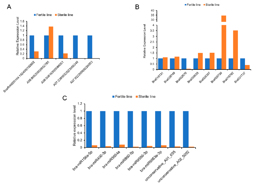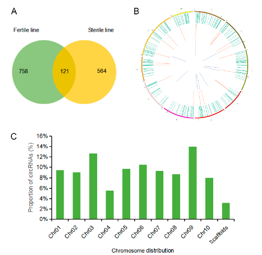 在以往的研究中,CircRNA作為內(nèi)源非編碼RNA的一員,被認為具有miRNA海綿和競爭性內(nèi)源RNA(ceRNA)功能。關(guān)于CircRNA在雄性不育和花藥發(fā)育中研究較少,因此作者在油菜中構(gòu)建了細胞質(zhì)雄性不育系(CMS),對不育系和可育系花蕾進行全轉(zhuǎn)錄組測序,揭示了油菜花藥發(fā)育中新的circRNA–miRNA–mRNA調(diào)控網(wǎng)絡,為進一步研究CircRNA和miRNA在花藥發(fā)育中的功能提供了一定的基礎(chǔ)。