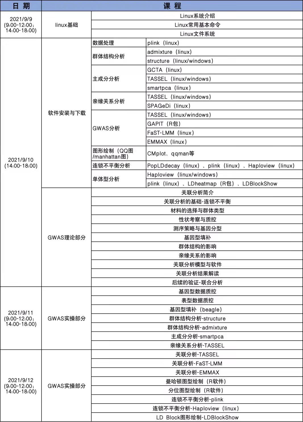 本課程主要從實踐入手,重點講解 GWAS 分析中用到的各種分析方法與常用分析軟件,包括群體結(jié)構(gòu)分析、主成分分析、親緣關(guān)系分析、連鎖不平衡分析、單體型分析等內(nèi)容。從原始數(shù)據(jù)開始,逐步完成分析內(nèi)容,并對分析內(nèi)容進行整理與挖掘,將數(shù)據(jù)轉(zhuǎn)化成更直觀的圖形來展示最終的分析結(jié)果。同時,課后還可反復(fù)觀看上課視頻,有問題隨時售后群中交流溝通,真正實現(xiàn)“線上學(xué)習(xí)理解,課后練習(xí)指導(dǎo),課下文檔復(fù)習(xí)”。